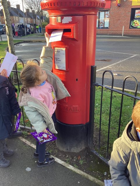 Today Reception posted their letters to Santa. We wrote down what we would like for Christmas and then put a stamp on the letter to send it to the North Pole. We even got a surprise gift- we think it might have been from the elves?