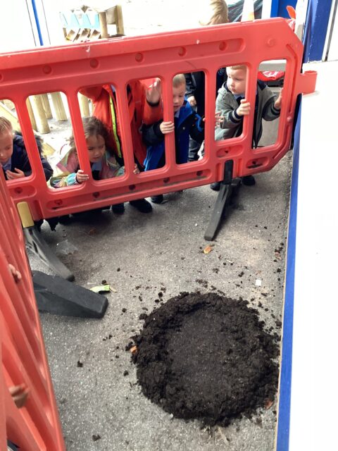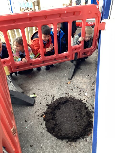 Today reception found a whole outside! We were all very shocked and we don’t know where it has come from. We think it might be The Gruffalo or a wolf 🐺. Watch out for the whole on our yard!