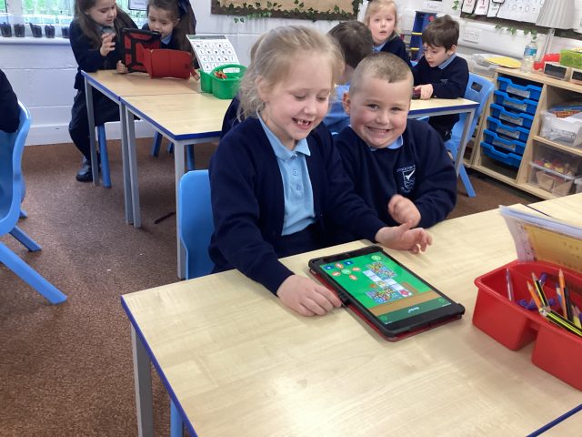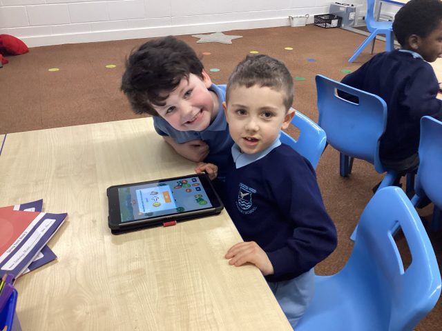 Today was a very successful computing lesson, our friends from year 6 helped us log on and supported us using the mouse. 😁 very happy children.