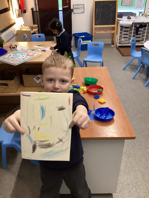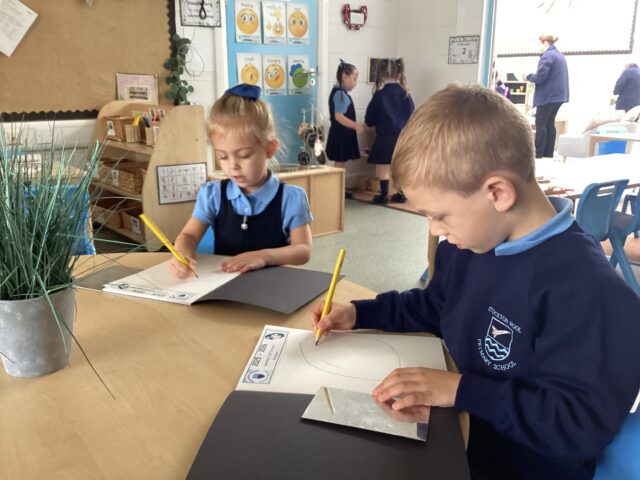 This week reception have been exploring the seaside and animals under the sea. Our new English text The Storm Whale has inspired us! Using pastels we coloured different animals that we find under the sea. We traced the patterns to help us improve our fine motor skills!