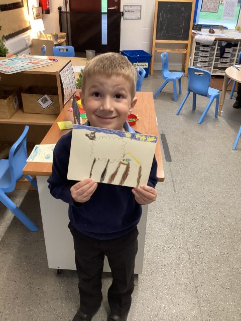 This week in RE reception have explored the Nativity Story. They have created Christmas cards which show the Nativity scene. Reception used pencils, coloured pencils and card.