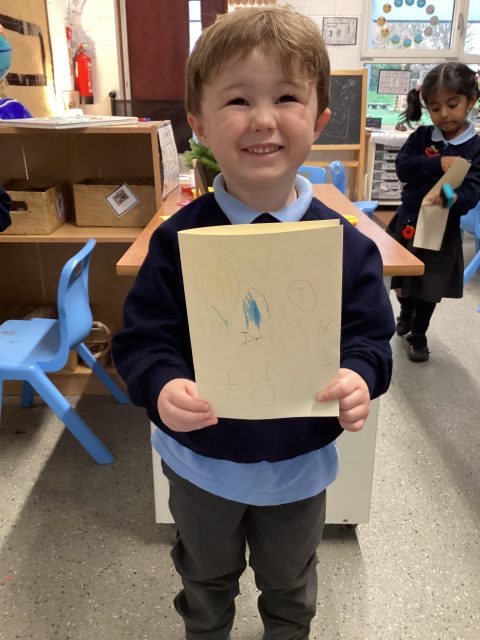 This week in Reception, we have been learning all about Bonfire Night. We found out who Guy Fawkes was and why people celebrate on the 5th of November. We made our own beautiful firework pictures using salt and coloured water to create bright, sparkly patterns. We also talked about how to stay safe when celebrating Bonfire Night, such as keeping a safe distance from the fire and being careful with sparklers.
