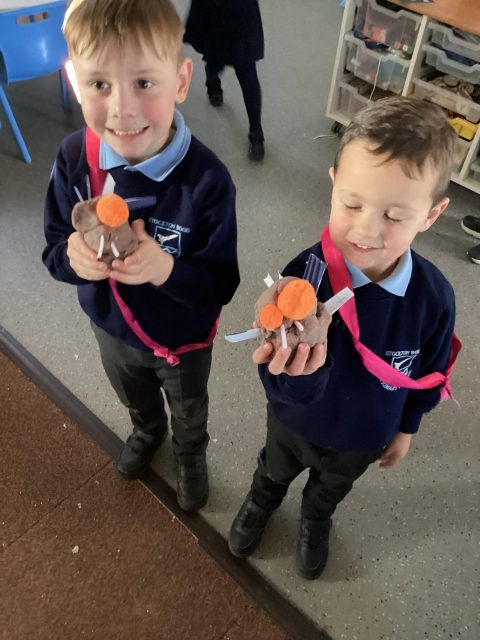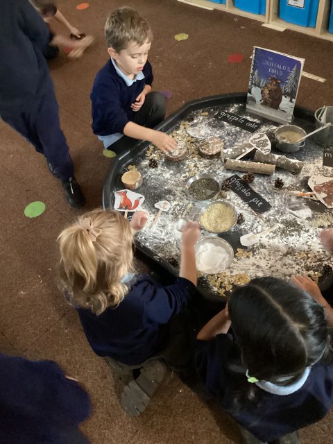 We have explored Julia Donaldson’s texts The Gruffalo and The Gruffalo’s child. We have created our own deep dark wood and made the characters!