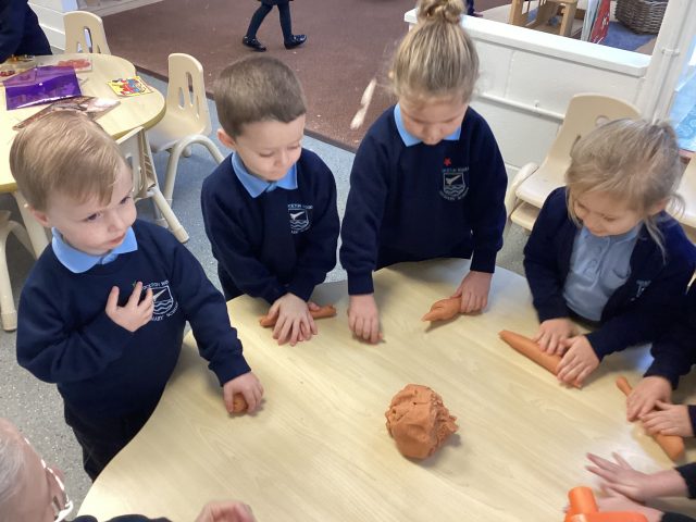 This week Reception have been exploring the author Julia Donaldson. We have made: Gruffalo pie from ‘The Gruffalo’s Child’, made the highway from ‘The Highway Rat’, put all the characters from ‘Room on the Broom’ onto the witches’ broom, made our own paper dolls from ‘Paper Dolls’ and made our own Stickmen from ‘Stickman’.