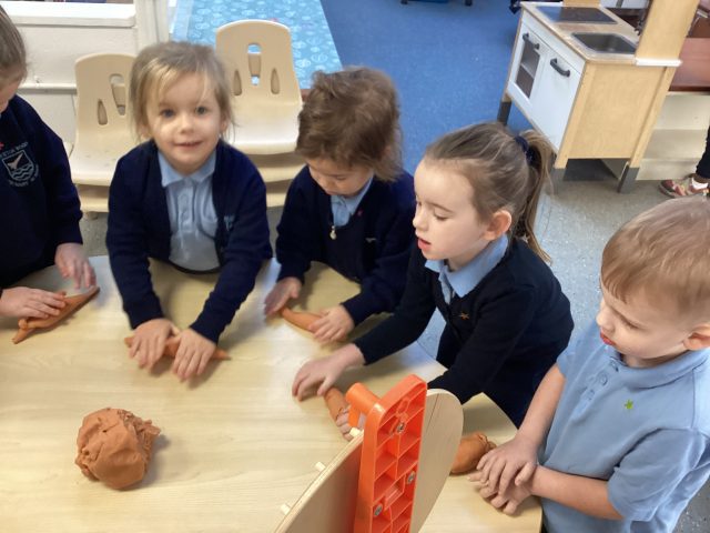 The children always enjoy story dough, but this morning they got a little shock at how cold the dough was! We always have to warm it up with our song, but it needed a little extra warming this time! The children were busy making a cheesy wolf 😅😎