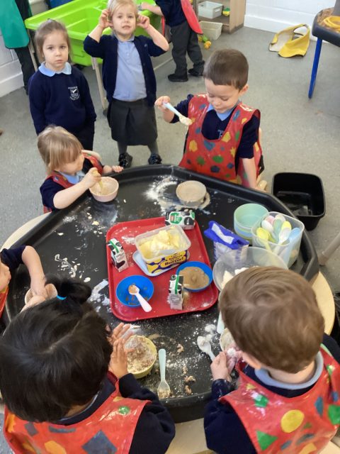 We had the choice of different ingredients, and we explored how they felt, smelt (and even tasted!) in our tuff tray.