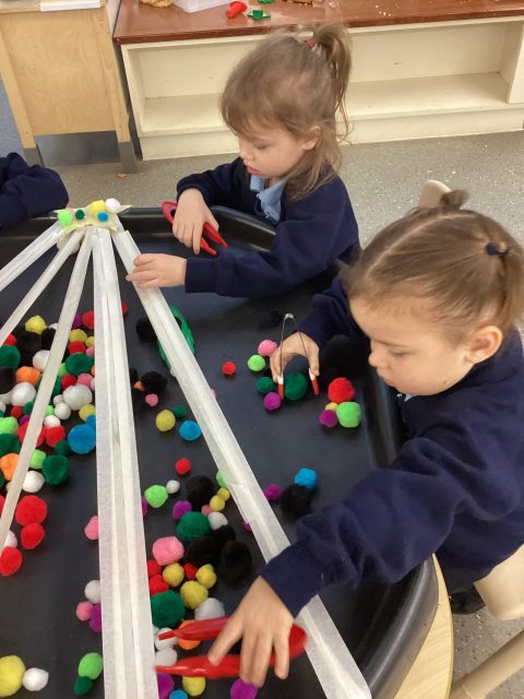 We used our strong hands to place ‘baubles’ on the Christmas tree 🎄