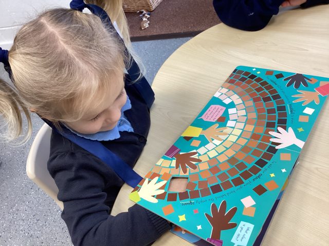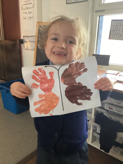We read ‘The Colour of Us’ today as part of our PSHE lesson, which linked really well with our learning of Black History Month. We spent some time looking at our own face in the mirror and talking about what we could see. We talked about the ‘skin colour rainbow’ in the book and added our own hands to the rainbow. Did you know that every persons skin colour is unique to them?! That’s part of what makes us special 🥰