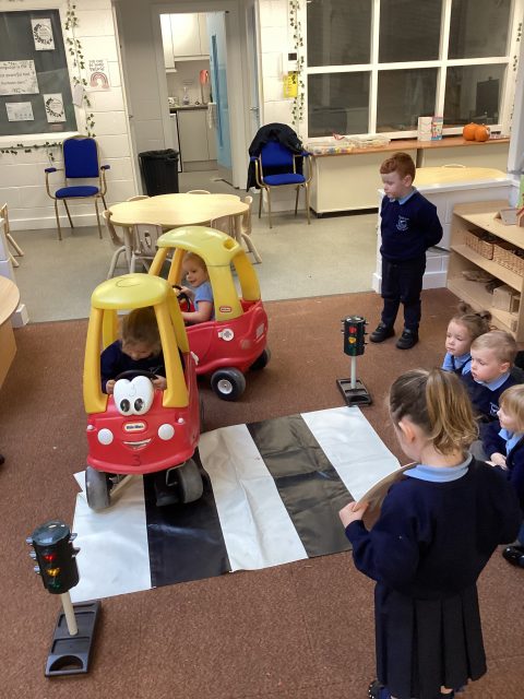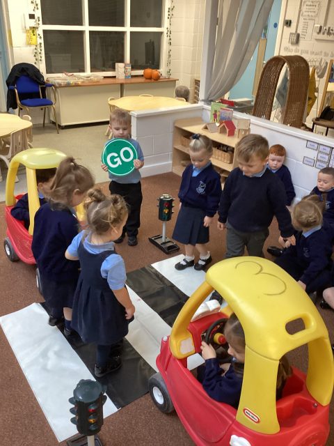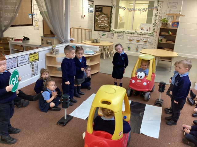 Did you know that traffic lights were invented by Garrett Morgan? Well, Nursery do! Today, we talked about how traffic lights help to keep us and drivers safe on our roads – J even said he is like a superhero for stopping cars from crashing as we talked about traffic lights giving cars each a turn to move safely. We had a talk about how to stay safe on roads when in a car, and how to cross the road safely.