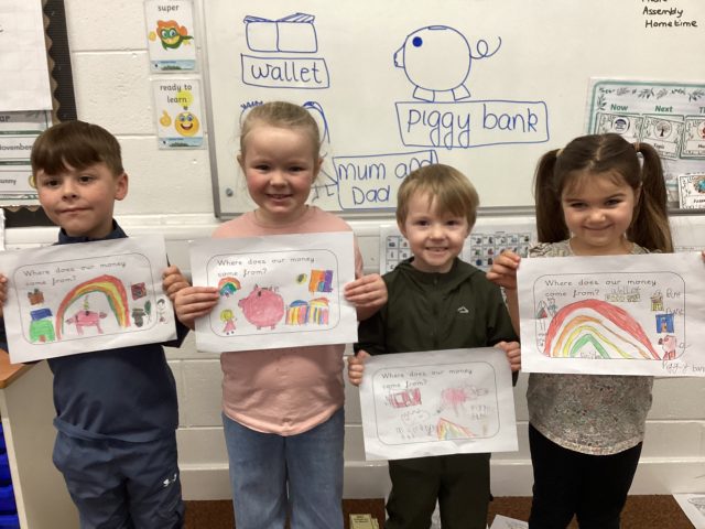 We have been discussing ‘Where does money come from?’ Look at all our wonderful ideas.