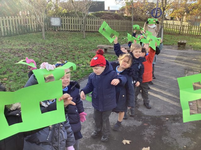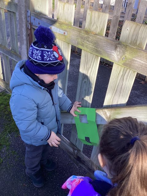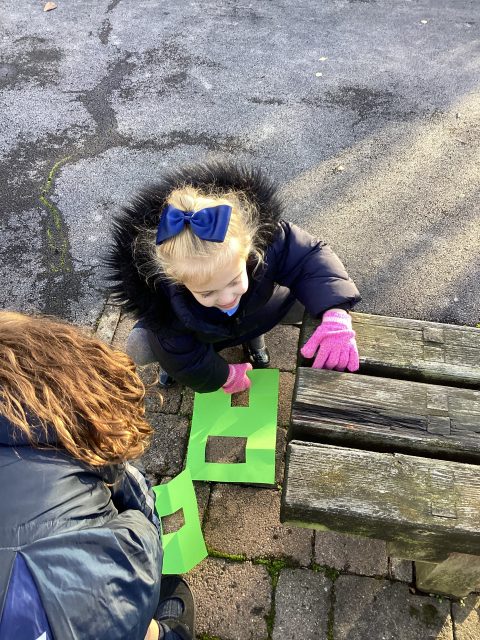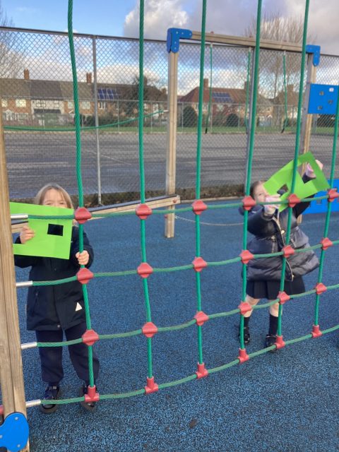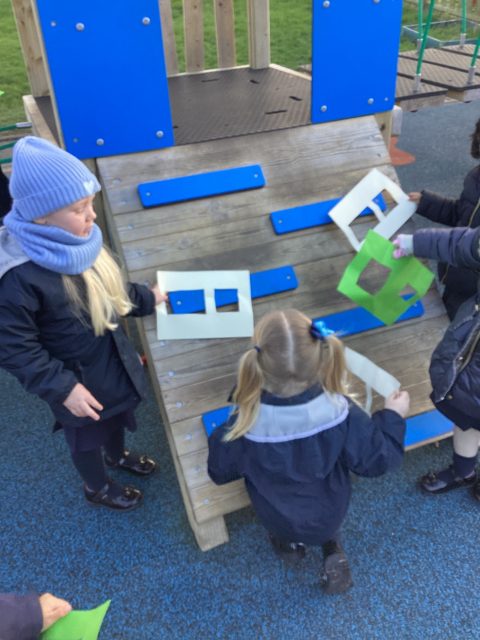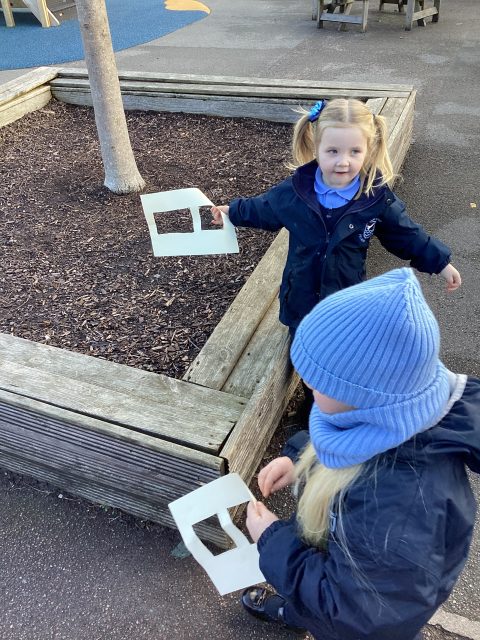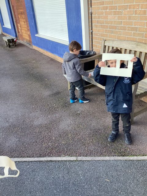 Today we explored our environment to find squares and rectangles, using our shape finders to help us spot the different shapes around us. We looked carefully at objects outdoors and were excited to discover how many items had four sides. It was a fun way to learn about shapes in the world around us!