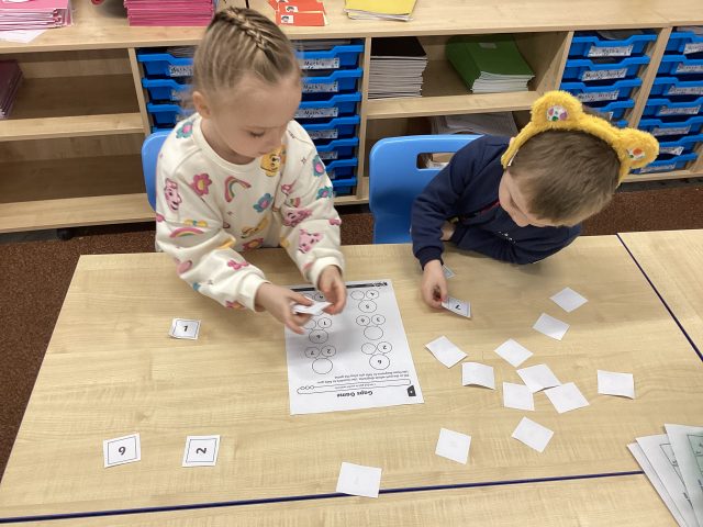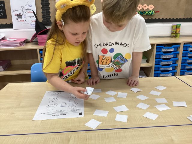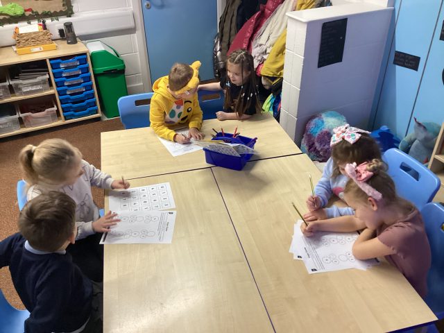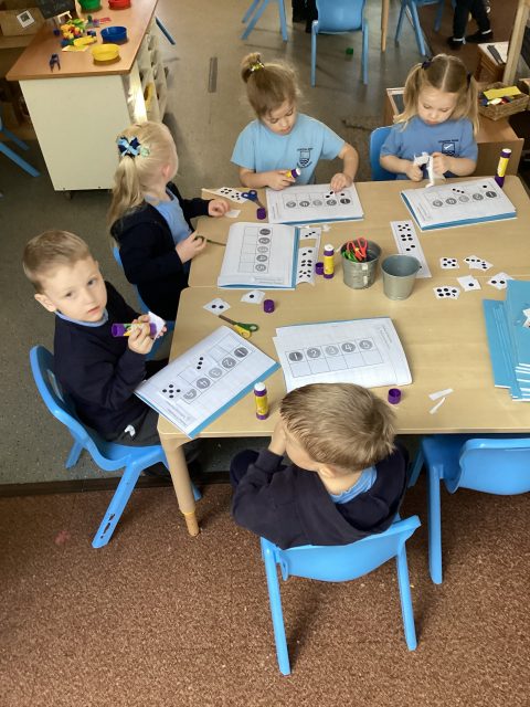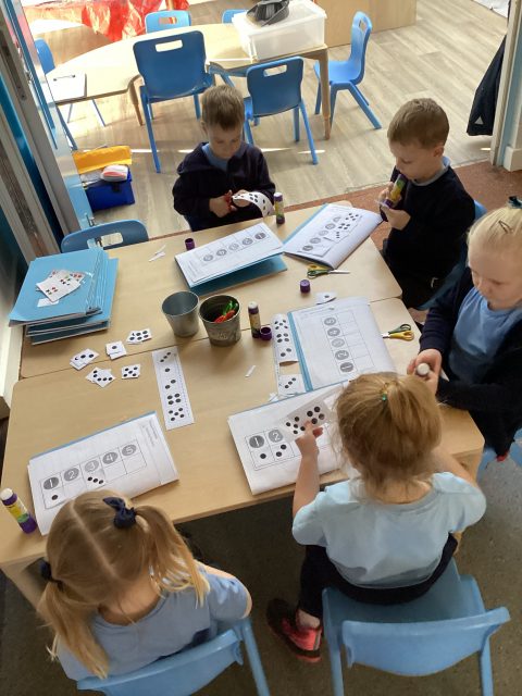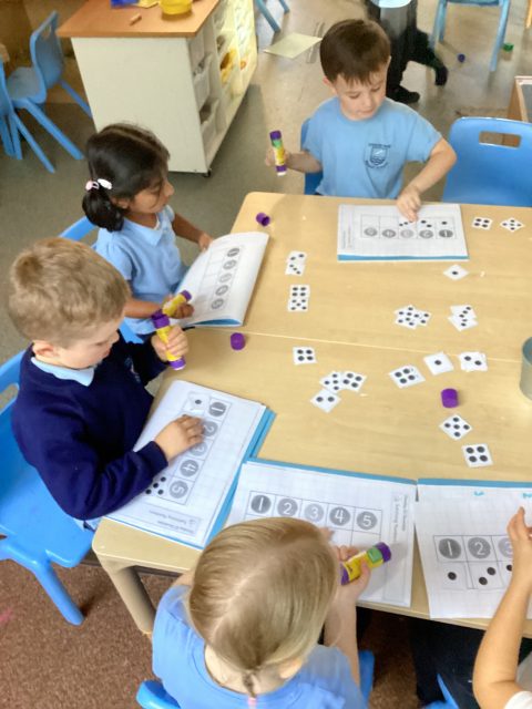 This week Reception have been focusing on the numbers; 1,2,3,4 and 5. Reception have begun to recognise these numbers and the composition of these numbers. Today Reception matched the digits to the dots.