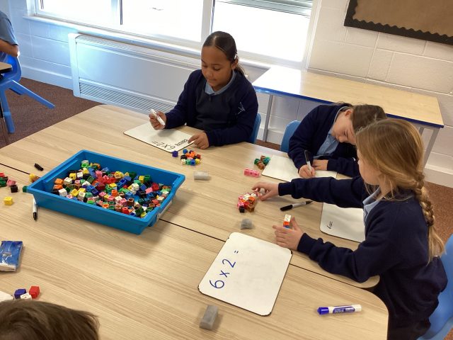 Year 4 have been practising their 6 times tables in maths. Today, they used counters and cubes to build arrays that helped them work out their times-table questions.
