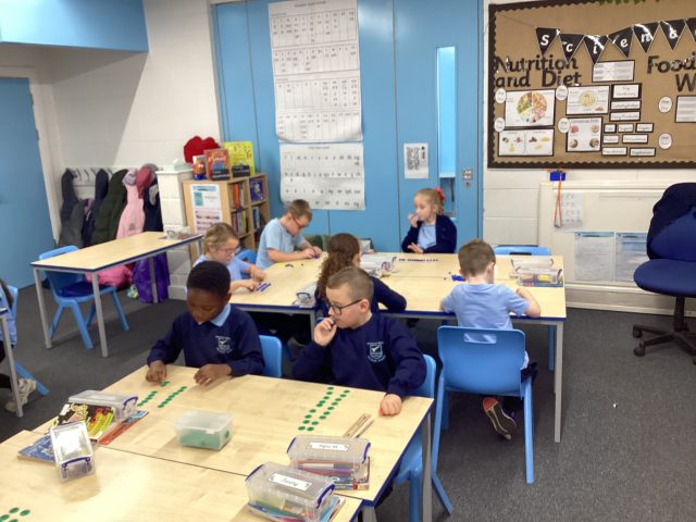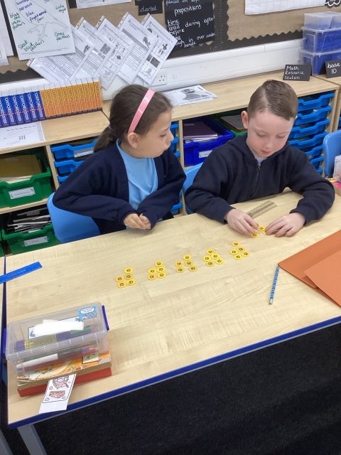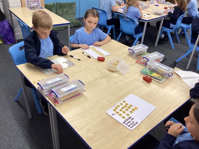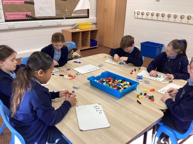 Year 4 have been enjoying Maths lessons this week. We have been using our resources to help with our multiplication and division.