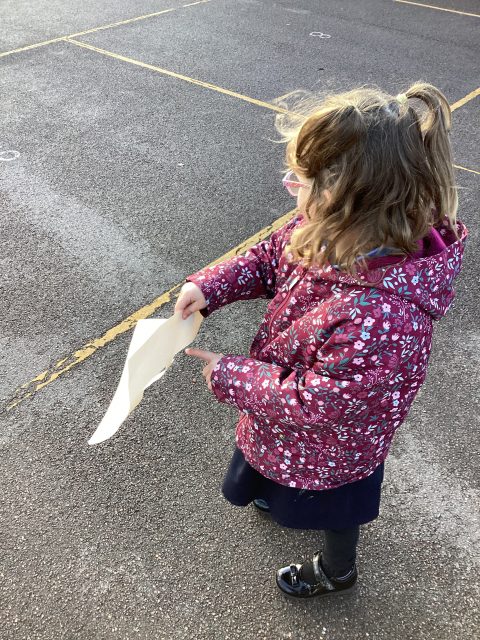 We were so excited when we spotted the crane from our garden! The children used words to describe the size of the crane (huge, gigantic, enormous) and we took turns in talking about what we thought the crane might be doing.