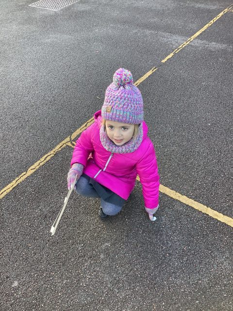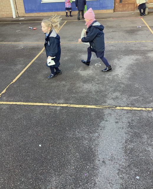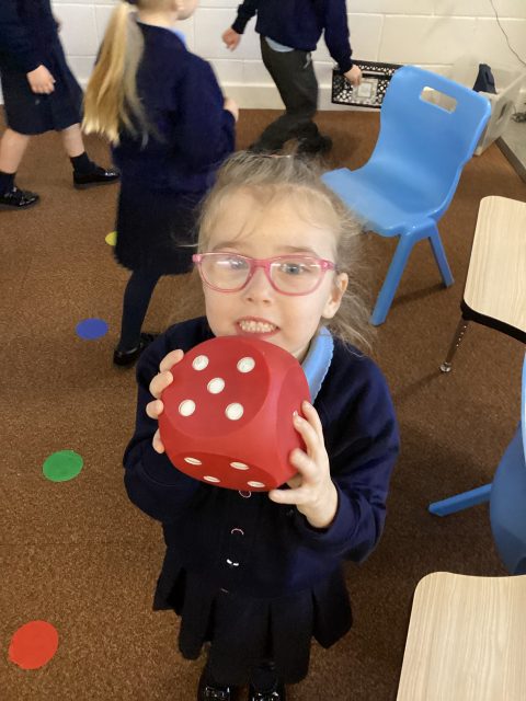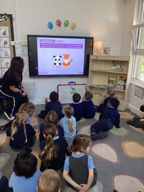 We have been learning about number 2: recognising the numeral, subitising when there are two objects and the composition of number two. The children had a challenge – go and find two objects. They didn’t need to match, but they needed two. The children quickly made a link and realised that they had two hands – if they had one object in each hand, they had completed the challenge!