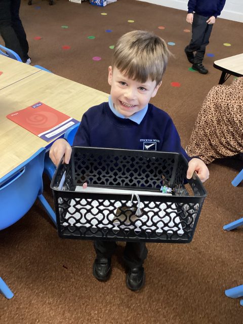 Thank you to all our families that were able to attend our stay and learn today! The children always enjoy welcoming you into our classroom. Our stay and learn today was all about DT week – the children had to think really carefully about the resources available to them and design and build a trap for the gingerbread man! We had to think about the sizes of the boxes, and choose things that were the right size for our model – some things were too big, some things were too small. We talked about the materials we could use to connect them – wet glue, glue sticks, cello tape, strong wide brown tape, masking tape or even string! Lots of opportunities for discussion and new vocabulary. Thanks again to all our families – we can’t wait to invite you in again soon!