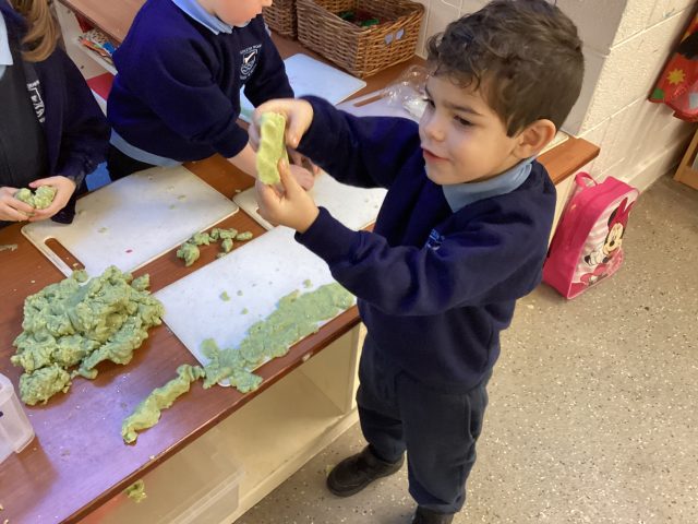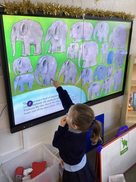 In PSHE, we read the story Elmer. We discussed how the elephants were different – some are small, tall, old etc. We linked that to ourselves – we all look a little bit different, and we all like and dislike different things. We then made elephants out of play dough and noticed that none of them were exactly the same – they all had differences!