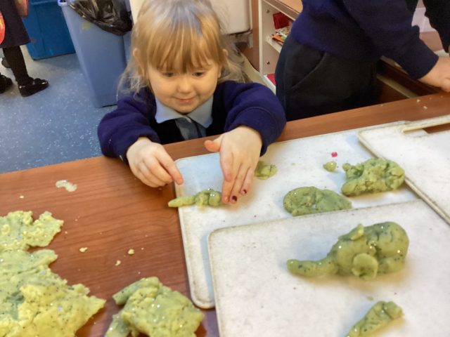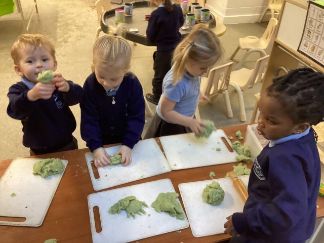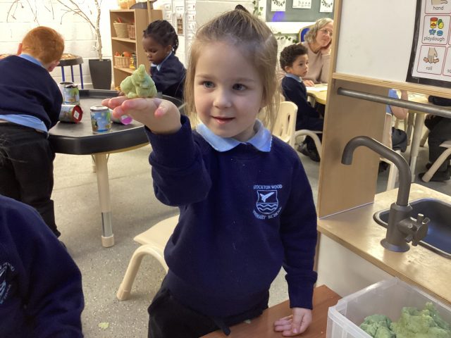 The children always enjoy story dough, but this morning they got a little shock at how cold the dough was! We always have to warm it up with our song, but it needed a little extra warming this time! The children were busy making a cheesy wolf 😅😎
