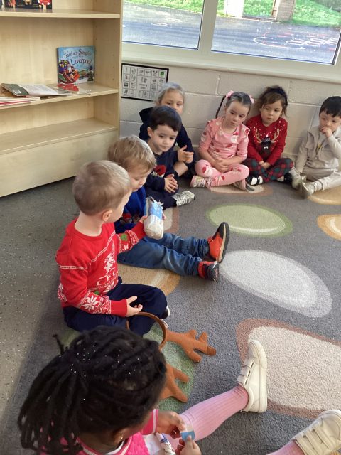 We consolidated our learning about the meaning of Christmas from visiting the church by rereading the Nativity story. We used our story props to help our story come to life. Children were amazing at remembering some of the key names like Mary, Joseph and Jesus. We talked about how much of a special time this is for Christian families.