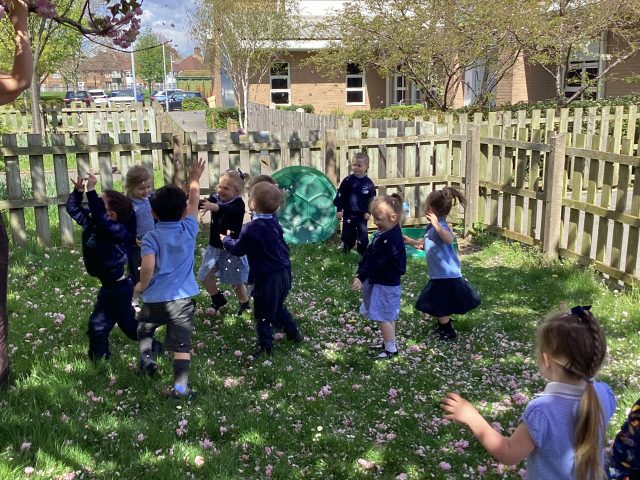 It’s that time of year again, when Mrs Clovis looks out of her window to see Mrs Ritchie shaking the trees…but what fun we had catching the blossom! We talked about the changes that spring brings, especially to our trees.
