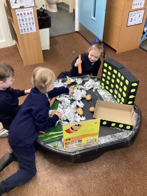 This week Reception have been exploring Supertato. We have become super hero’s to save the fruit and vegetables from Evil Pea.