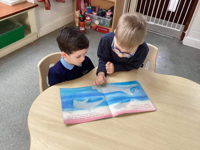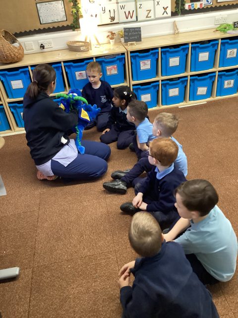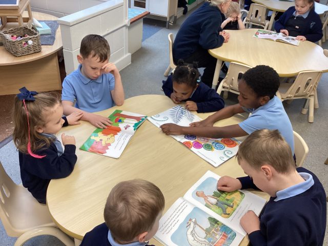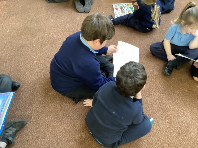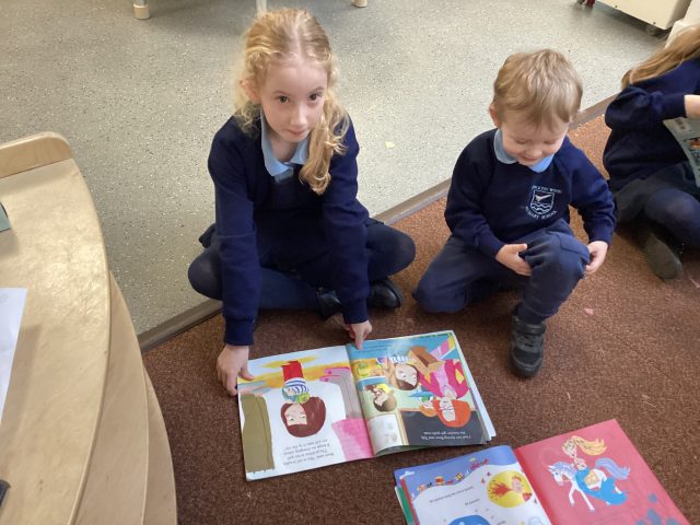 Year 4 came and read a story to the Reception children. The Year 4 children read and asked questions to the Reception children. The Reception children even read some words to the Year 4 pupils.