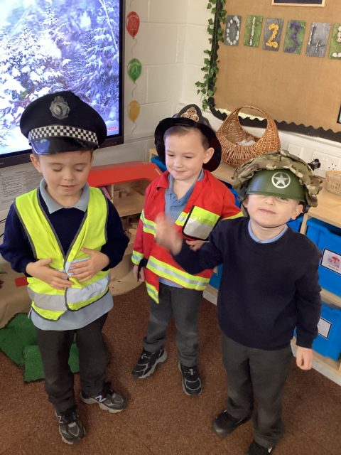 This week Reception are exploring people who help us. We have discussed police men and women, fire men and women, doctors, dentists, nurses, teachers and shop assistants. We have also discussed what we would like to be when we grow up!