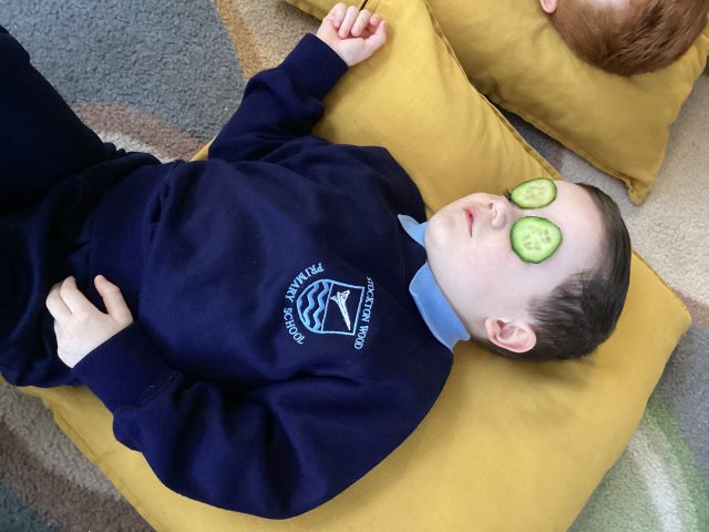 This week is Children’s Mental Health Week so we decided to focus on well-being for our stay and learn – and what better thing to do for our well-being than to create our very own spa experience! We enjoyed hand massages, foot soaks, meditation, and even created our own smelly tissue. We also made our own sensory bottles! Thank you to everyone that came to support us 🥰