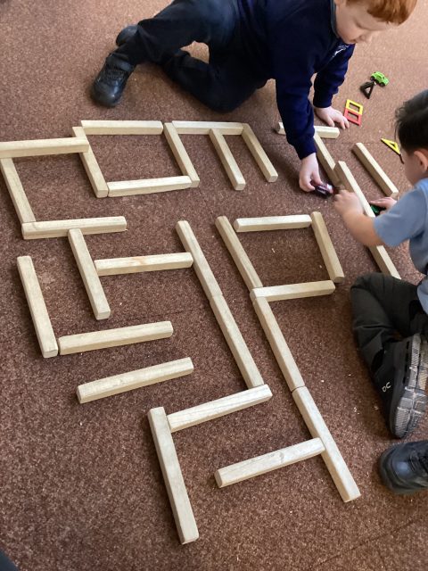Some of the boys began to create ‘signs’ on the carpet – they told us it said “STOP” for the cars. Then one of our friends suggested we turn it into a “cool maze” for the cars!