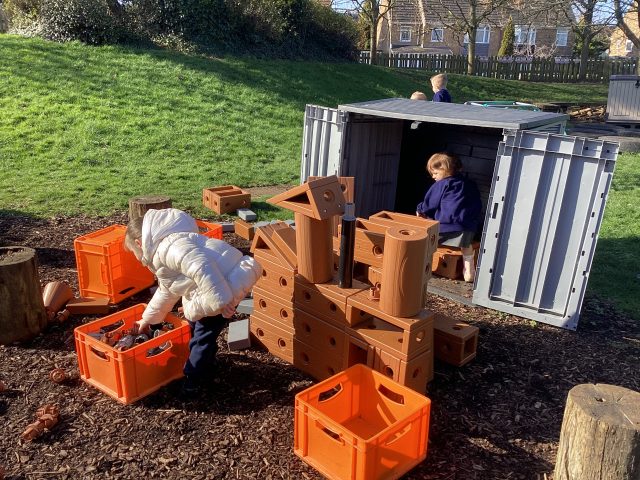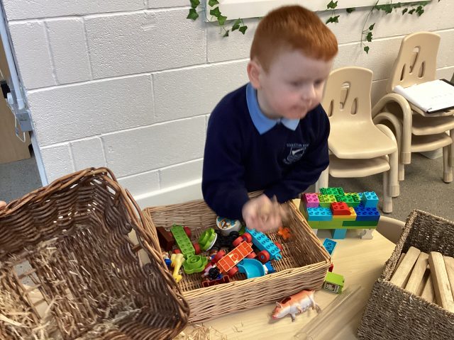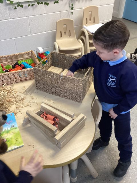 Last half term, our driver text was The 3 Little Pigs. This week, we had a basket of straw, a basket of wood and a basket of bricks and instantly the children knew which story they belonged to! We built houses for the pigs and retold the story from memory!