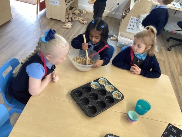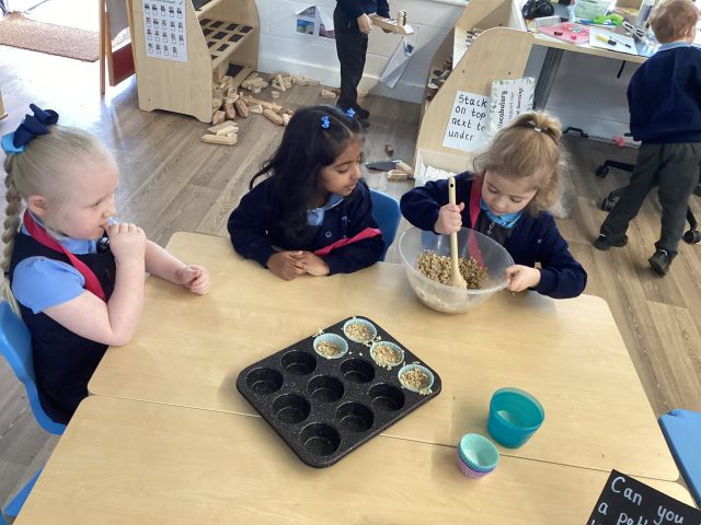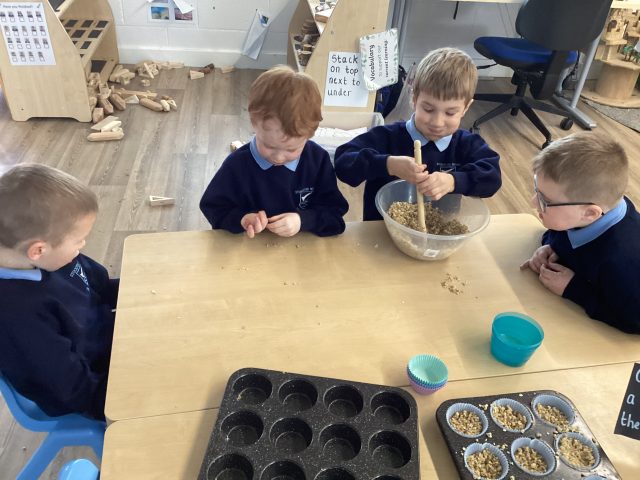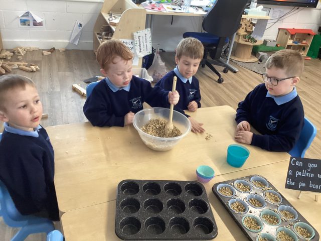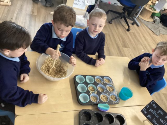 During PSHE this week, we have discussed how we can look after our outside spaces. We spoke about how taking care of our environment helps to keep our wildlife safe. Today we made our own bird food to put in our outside spaces.