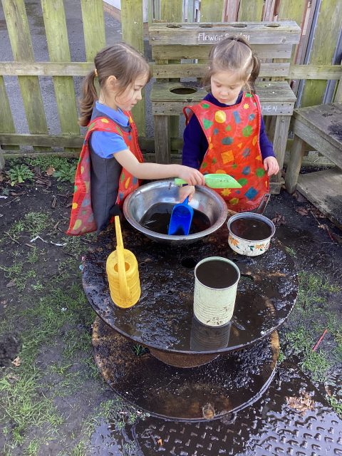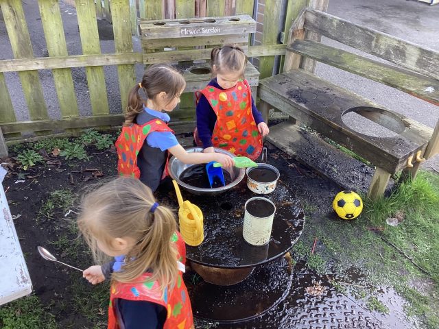 It was lovely to see the sunshine make an appearance after a very cold few weeks! We made the most of it! We had so much fun, but the most fun came from cleaning the table and chairs after our messy gloop!