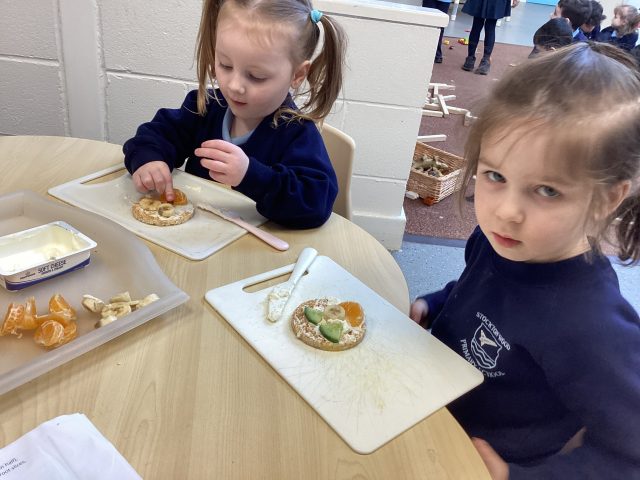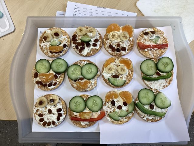 We have been learning about how different foods play different roles in keeping us healthy. We used healthy snacks to create healthy teddy bear faces! We enjoyed eating them afterwards 😋