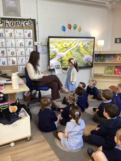 Year 4 came and read a story to the Reception children. The Year 4 children read and asked questions to the Reception children. The Reception children even read some words to the Year 4 pupils.