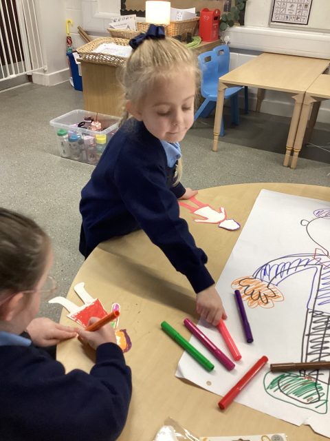 We consolidated our learning about the meaning of Christmas from visiting the church by rereading the Nativity story. We used our story props to help our story come to life. Children were amazing at remembering some of the key names like Mary, Joseph and Jesus. We talked about how much of a special time this is for Christian families.