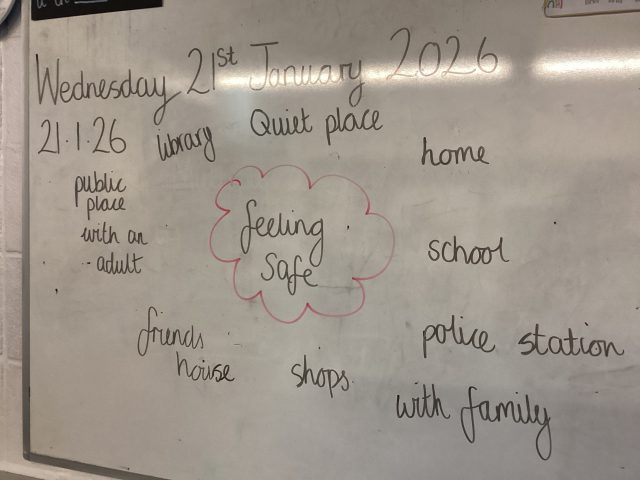 We took part in a whole class Quiet Place session where we practised our heart breaths and different techniques to help us stay calm. We talked about how these strategies can help us when we feel worried or overwhelmed. At the end of the session, we were given a smelly tissue to help us remember the different calming techniques we had learned.