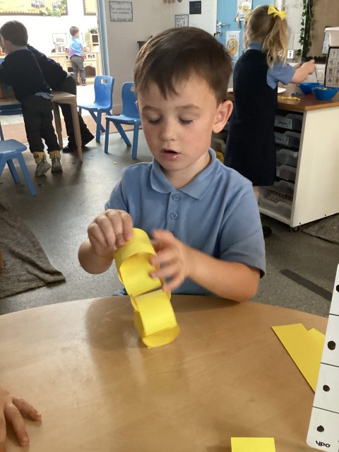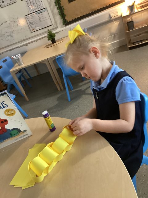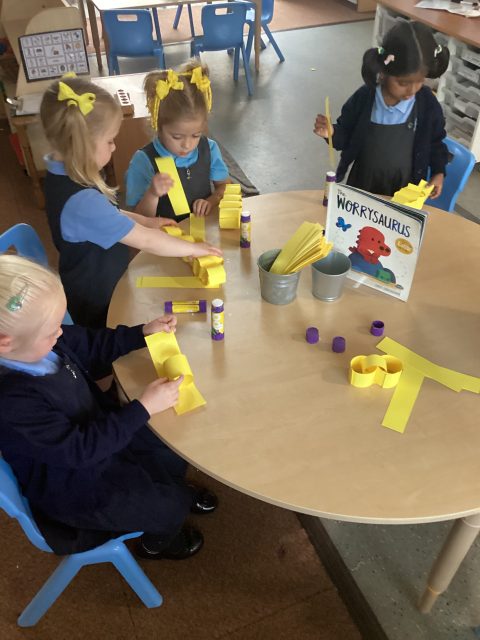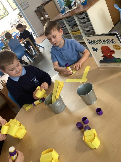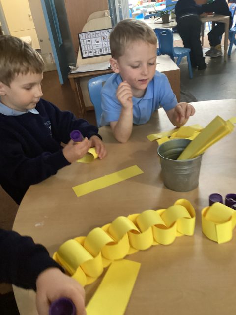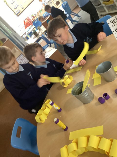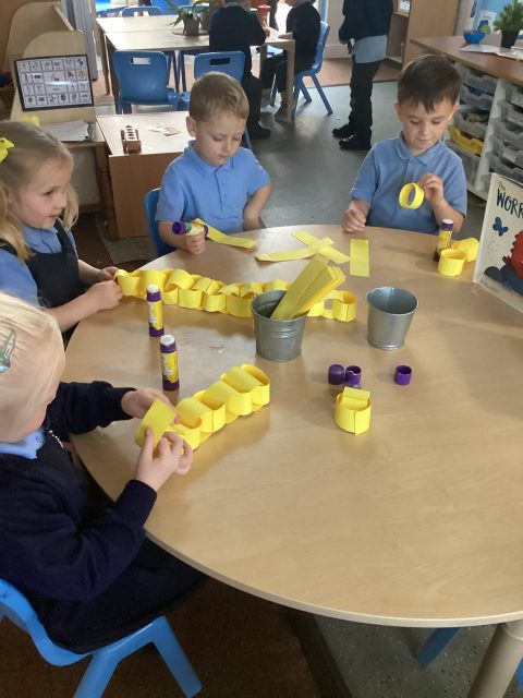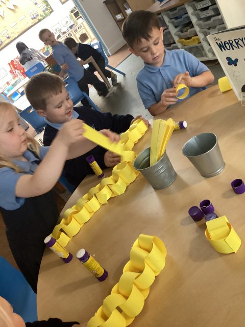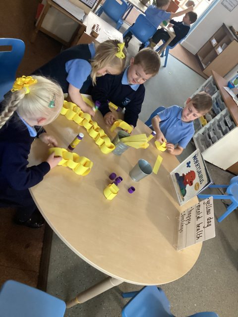 Reception had fun on Yellow Day. We discussed our feelings and how we can help ourselves when we are feeling sad or upset. We created yellow paper chains to brighten up our space!