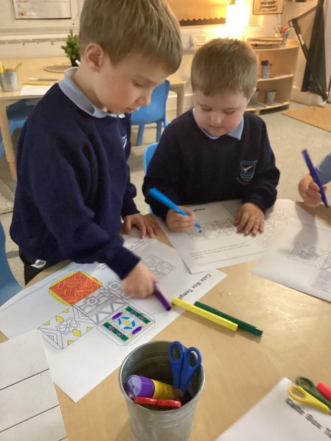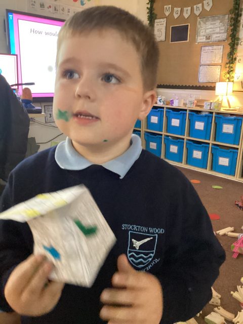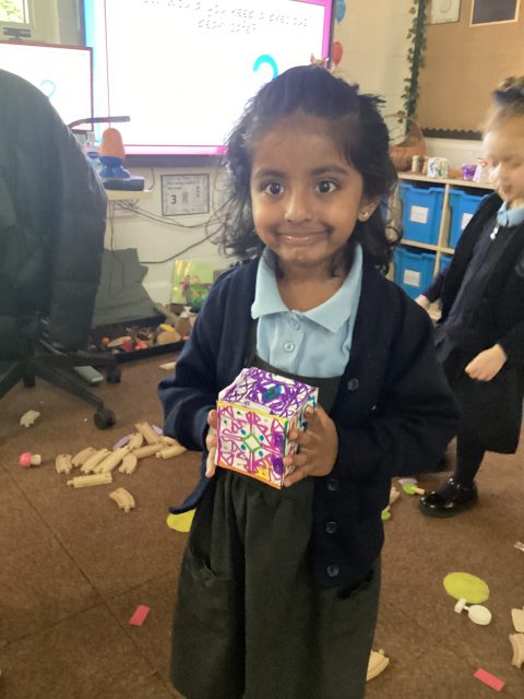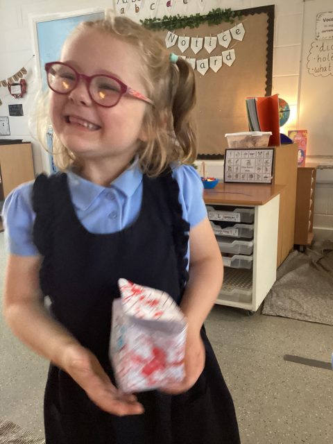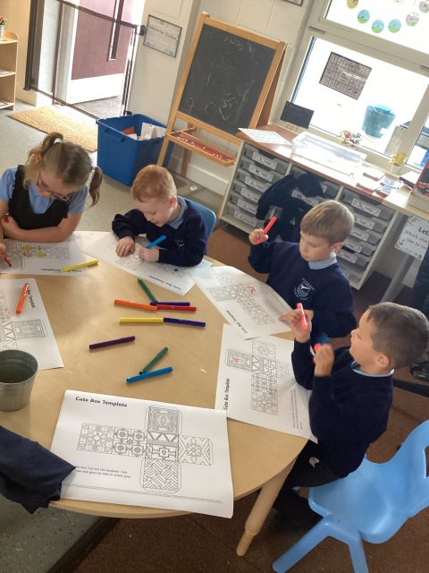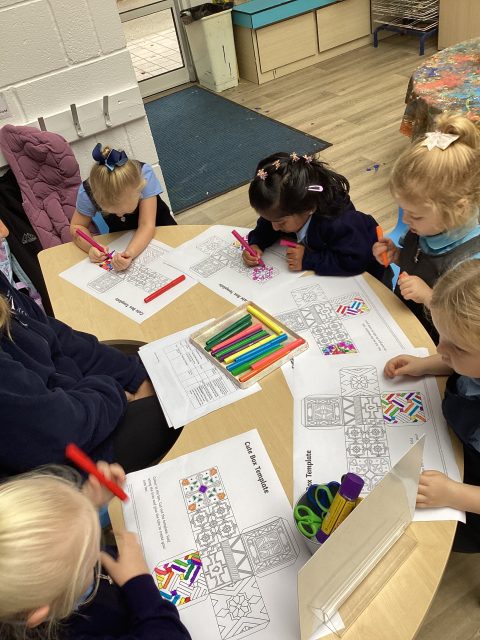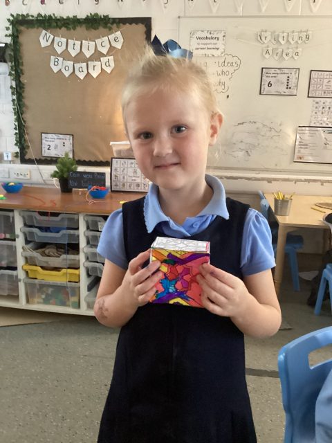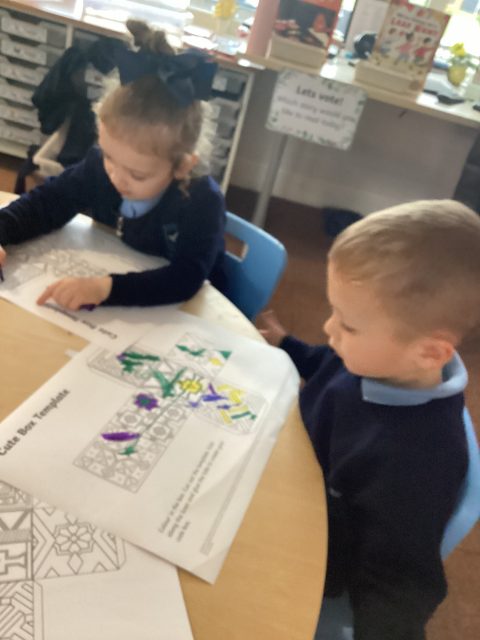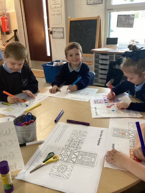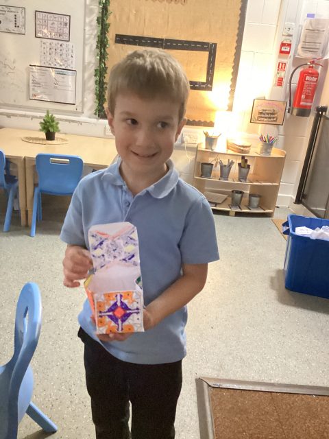 In RE this week Reception have read the story of the Precious Pearl from the Bible. We discussed what Christians believe this story symbolises and why it is an important parable to Christians. We created a box to put our own precious things inside to keep safe. We used; card, scissors, glue and felt tip pens to create our boxes.