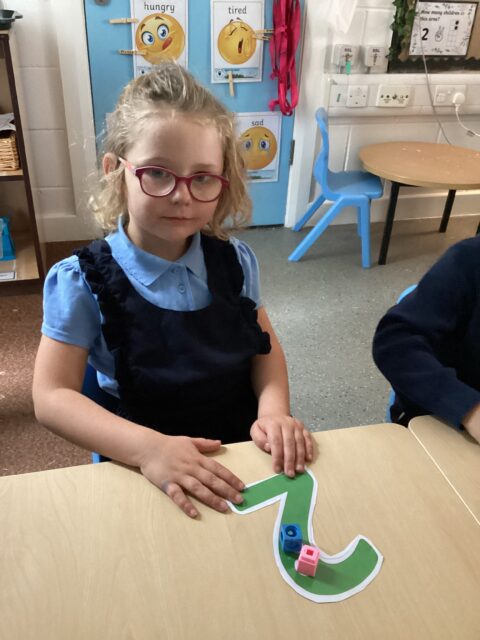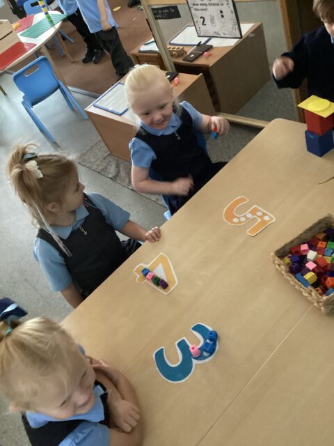 Reception have explored numbers to 5, they placed the correct amount of cubes onto the numbers!