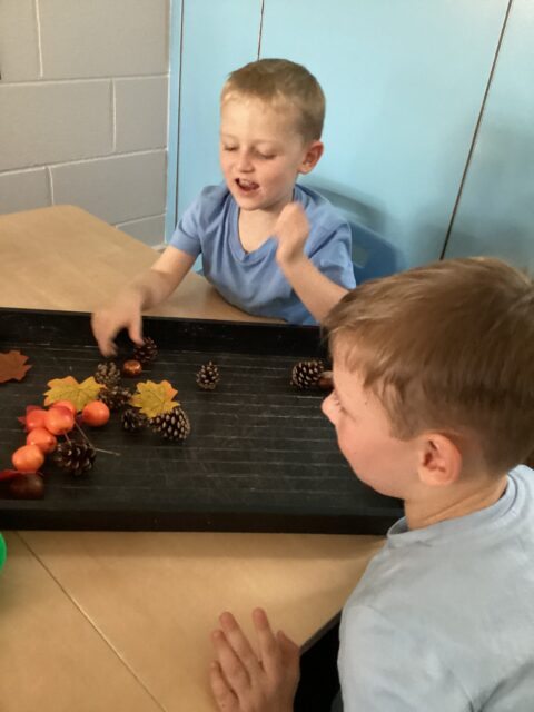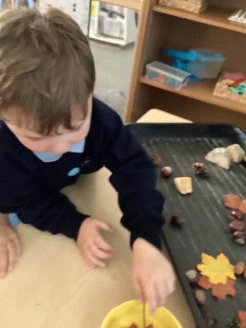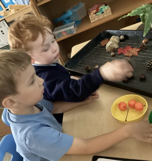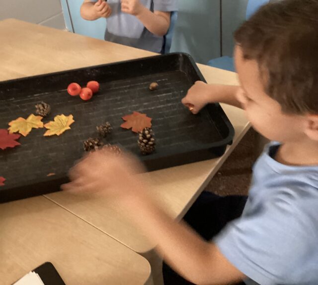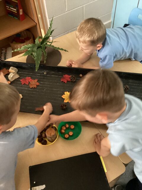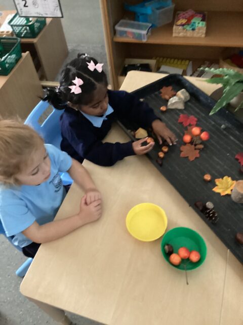 In Maths, reception have been learning about sorting and matching. This week reception used the Autumn objects to create their own sorting rule. The children made many different rules including: