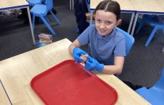 As part of Science week, we’ve been learning about how penguins have adapted to their environment. Blubber helps them keep warm, we did a taste to see how blubber keeps our hands warm.
