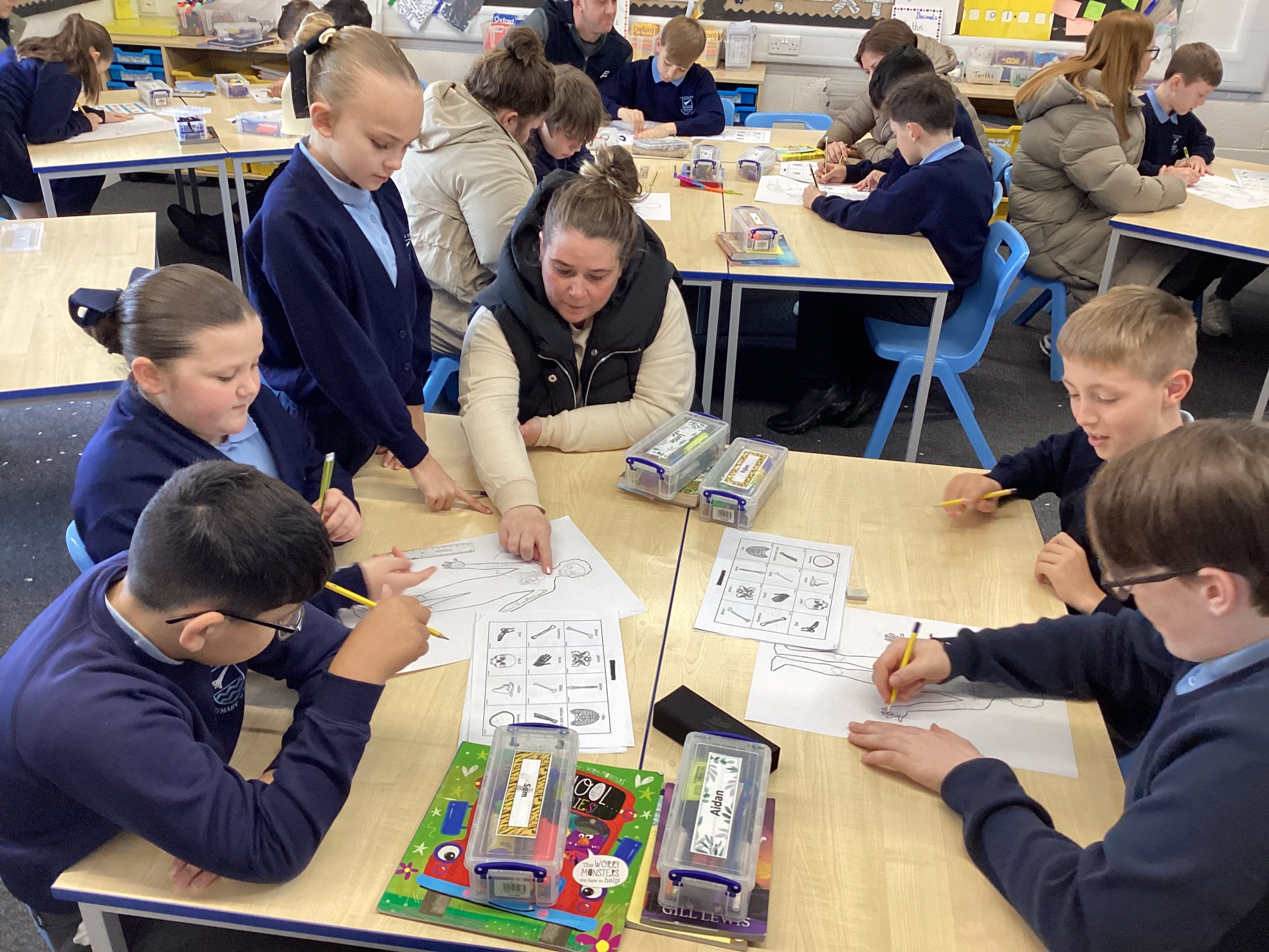 Year 6 enjoyed welcoming our parents into class this week to complete science based activities. We had to work together to locate and draw the organs and bones in the correct places within the body.