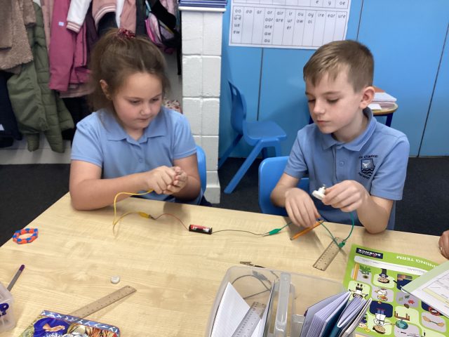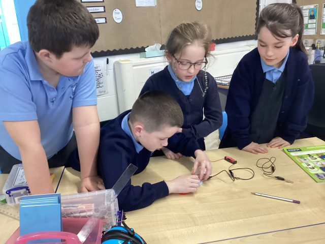Year 6 worked together in Science to create different series circuits using a range of components.