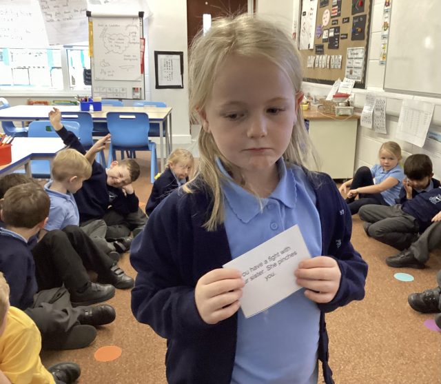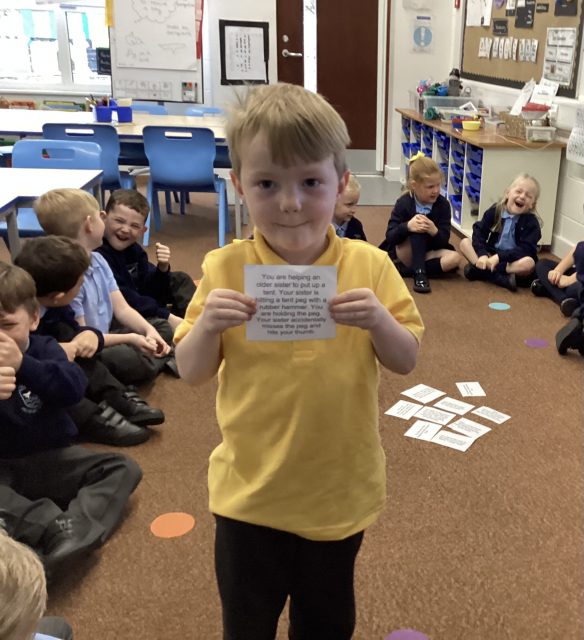Carrie came in to speak about drama on Friday. She brought in props for the children to use and lines for them to act out using expression.