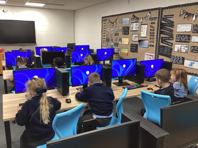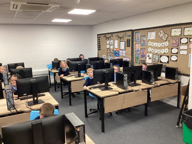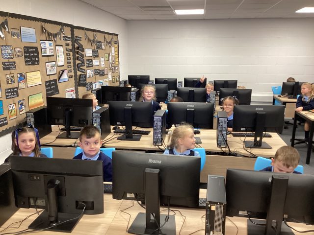 Today was a very successful computing lesson, our friends from year 6 helped us log on and supported us using the mouse. 😁 very happy children.