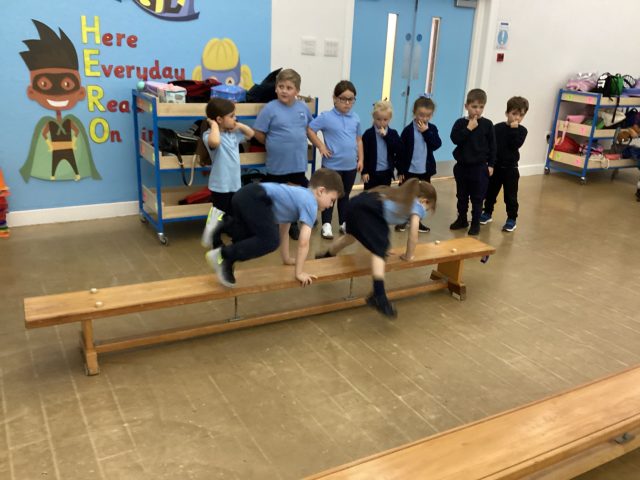 Today in our PE lesson we started gymnastics. We have looked at different ways of moving and travelling. We moved high, low, in different directions and different speeds.