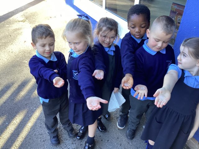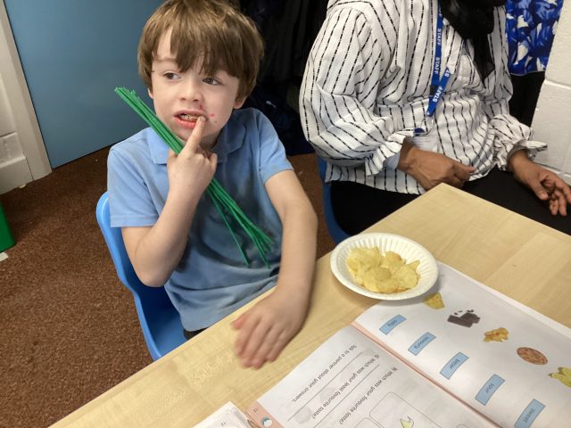 Great start to Science week in Year One exploring different types of “beak” tools (tweezers, spoons, straws and chops sticks) to pick up different “food” (rice, gummy worms and marbles.)