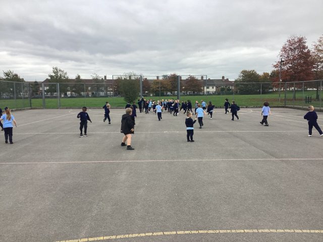 Great sending and receiving skills during PE this week. Good control displayed and good communication skills between partners too.