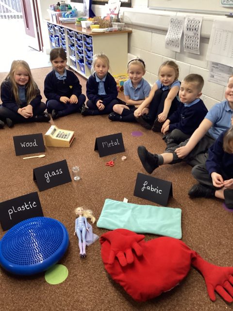 Look at Year One learning all about objects and a range of materials. We went on a materials hunt. Look at all the objects we found in and around our classroom that are made from: wood, metal, glass, plastic, rock and fabric.